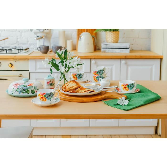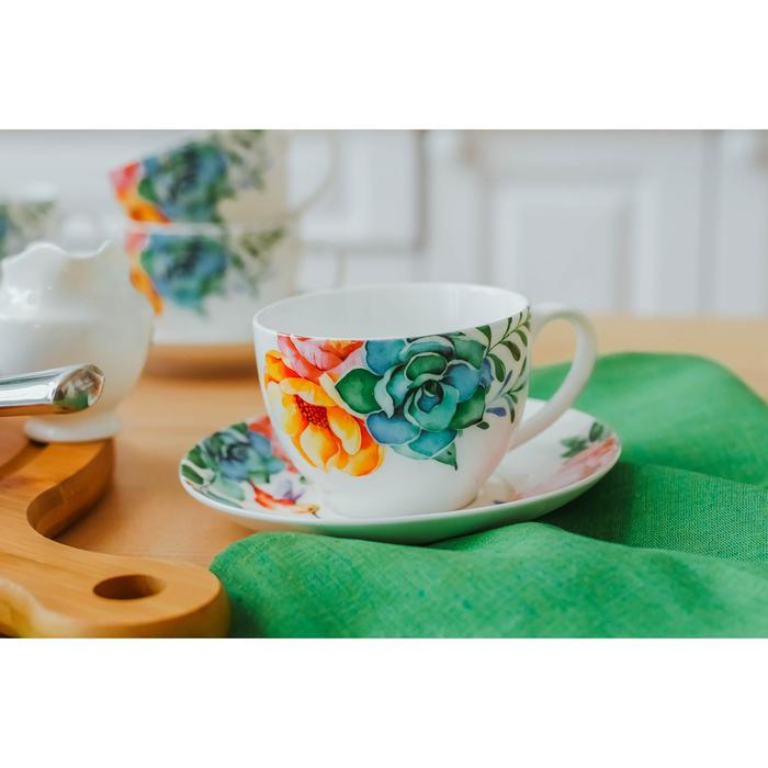 Сервиз фарфоровый чайный Доляна «Пташка», 12 предметов: 6 чашек 250 мл, 6 блюдец d=15 см