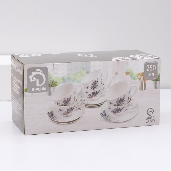 Чайный стеклянный набор Luminarc «Идиллия», 12 предметов: кружка 265 мл, 6 шт, блюдце d=13 см, 6 шт, цвет лилак