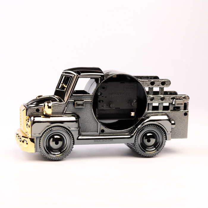 Часы с будильником представлены в ретро дизайне в форме автомобиля, они отлично впишутся в интерьер. Интерьерные часы станут прекрасным декором для дома и дачи, их можно поставить как на прикроватную тумбочку в спальне, детской комнате, гостиной так и на стол или на комод в зале, холле или на кухне. Будильник настольный имеет кварцевый механизм, который гарантирует высокую точность хода. Часы настольные обладают громким будильником, ребенку и вам будет комфортно просыпаться, на работу и в школу. Будильник на батарейках не требует частой замены батареек благодаря экономичному механизму.