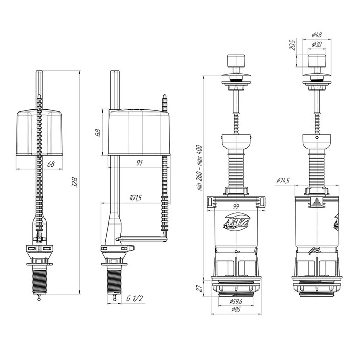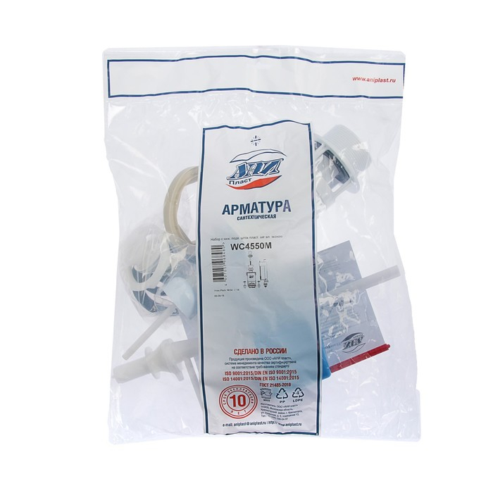 Арматура для смывных бачков "АНИ Пласт" WC4550М Эконом, с нижней подводкой 1/2", белый шток