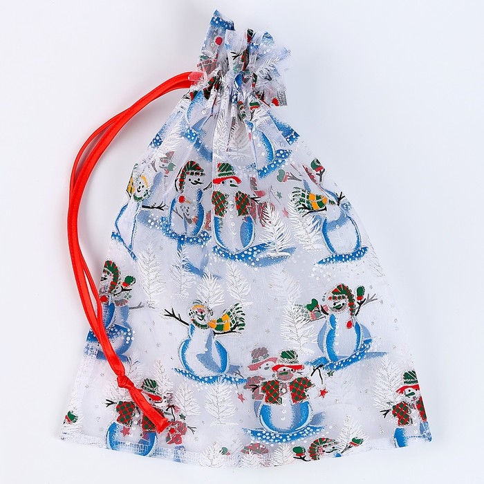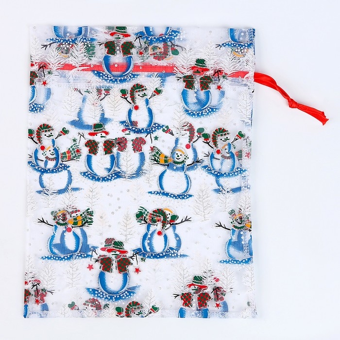 Новый год! Мешок подарочный «Снеговики на лыжах», р. 25 × 32 см, органза