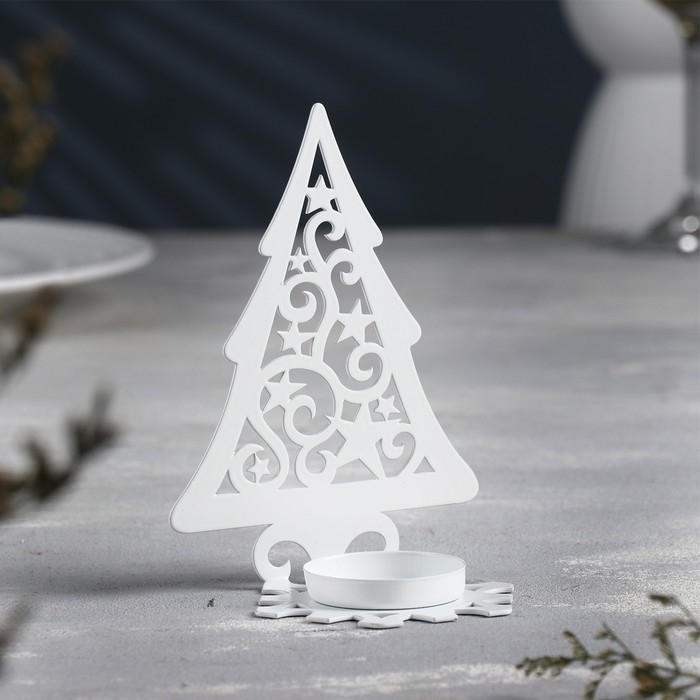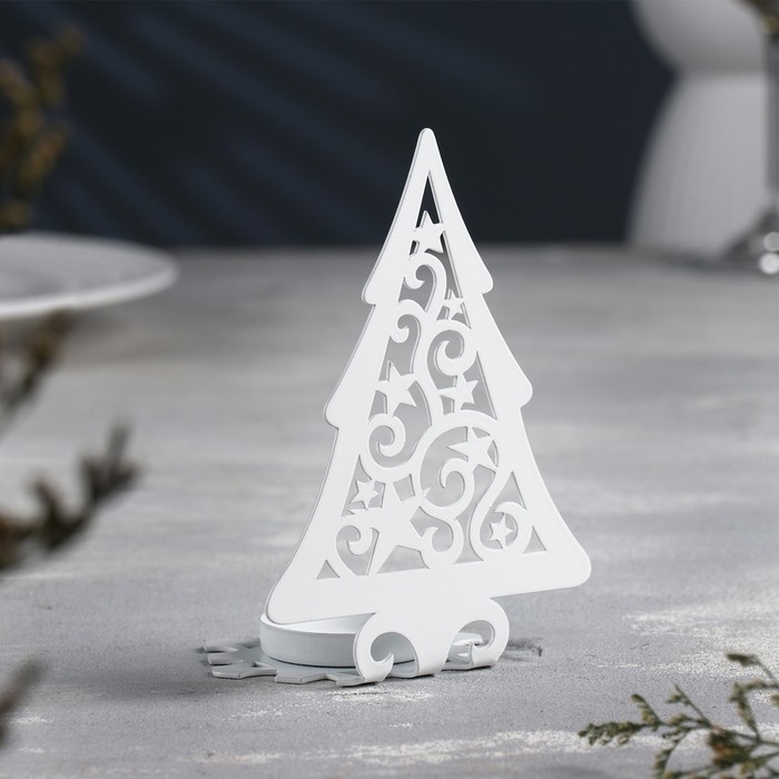 Новый год Подсвечник "Ёлка со звездами" металл на одну свечу, 6,6х10х13 см, белый