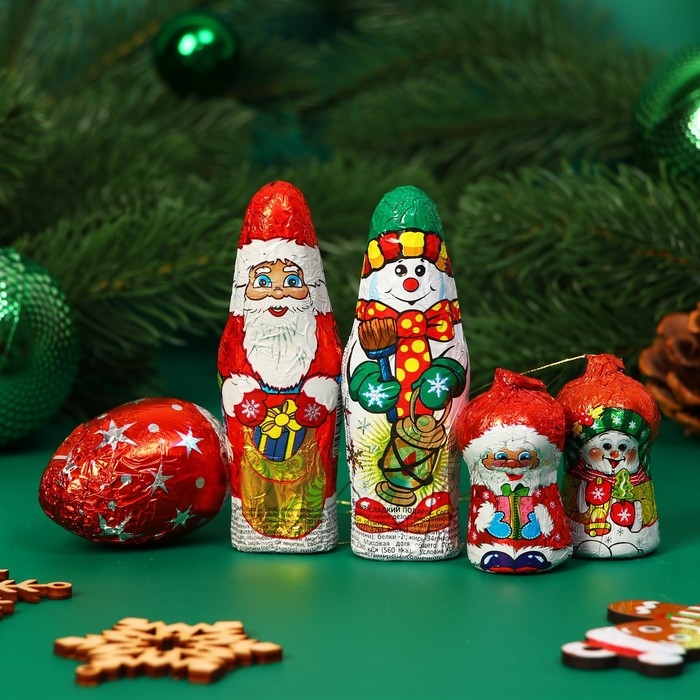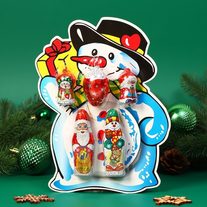 Новый год. Набор фигурного шоколада в блистере "Дед Мороз, Снеговик, Шишка", 81 г