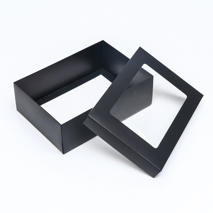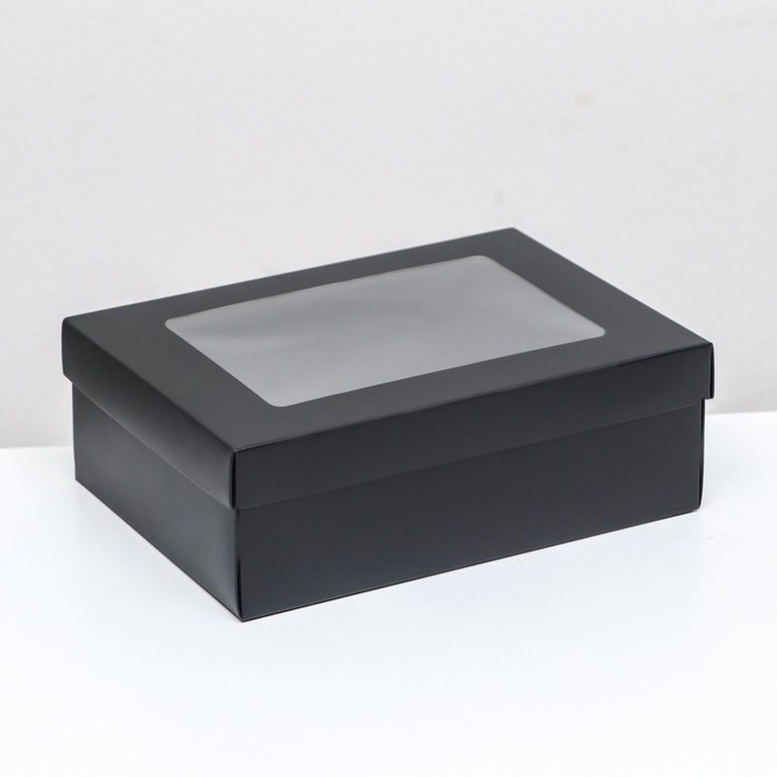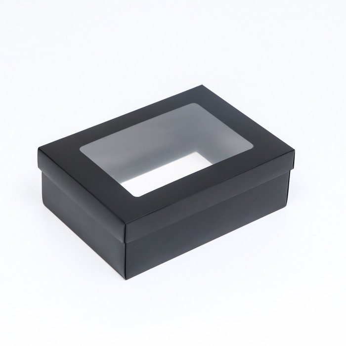 Коробка подарочная складная, упаковка, «Чёрная», с окном 21 х 15 х 7 см