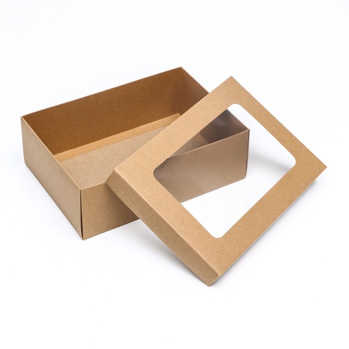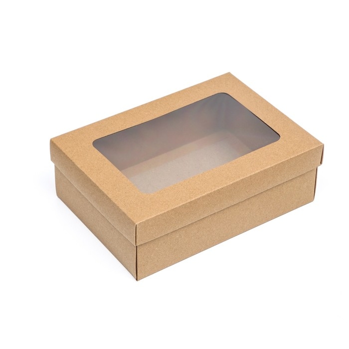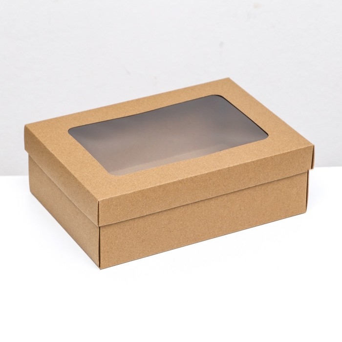 Коробка подарочная складная, упаковка, крышка-дно, с окном, крафт, 24 х 17 х 8 см