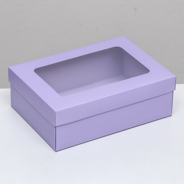 Коробка подарочная складная, упаковка, крышка-дно, с окном, сиреневая , 24 х 17 х 8 см