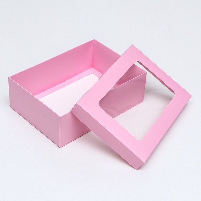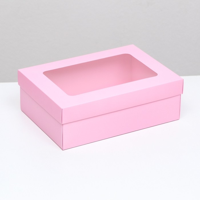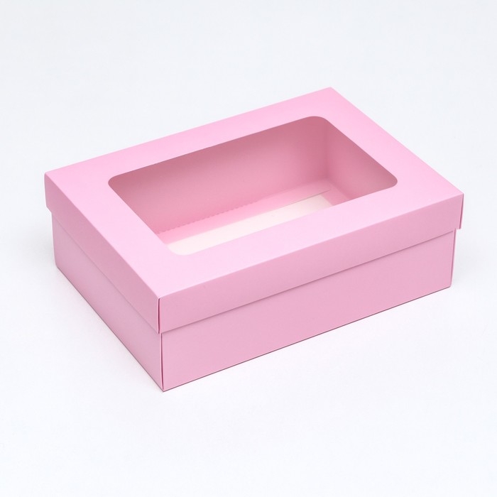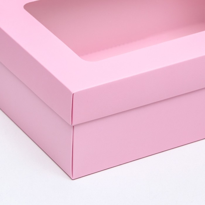 Коробка подарочная складная, упаковка, крышка-дно, с окном, розовая , 24 х 17 х 8 см