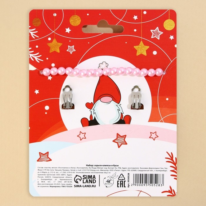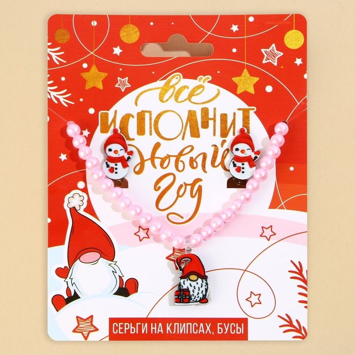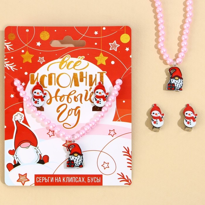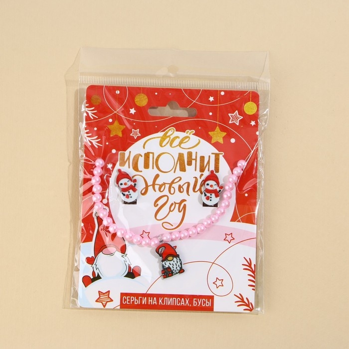 Серьги клипсы и бусы новогодние «Все исполнится», на Новый год, набор, 11 х 14 см