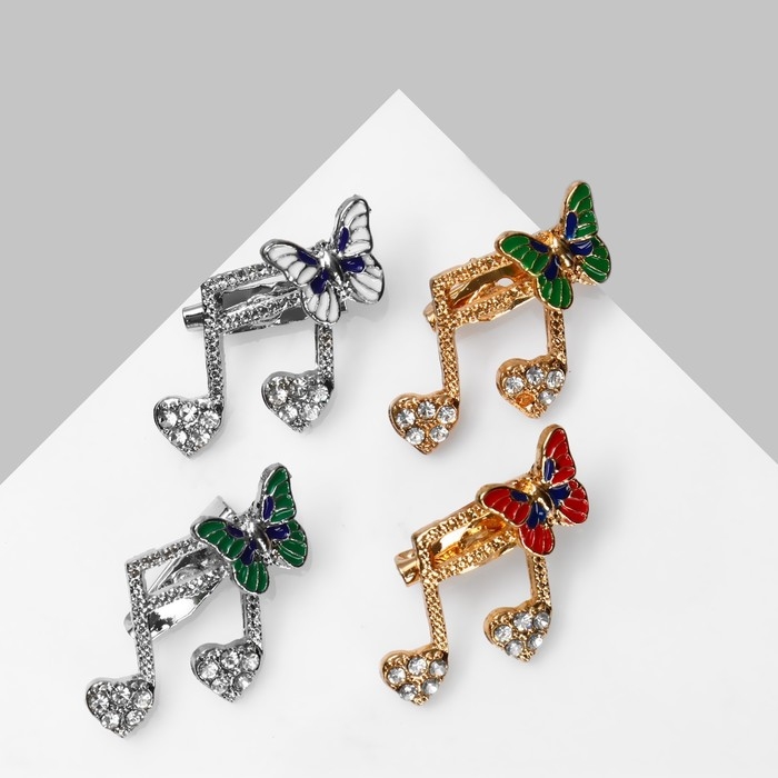 Брошь «Нотка» с бабочками, цвет МИКС (неделимая фасовка 12 шт., цена за шт.)