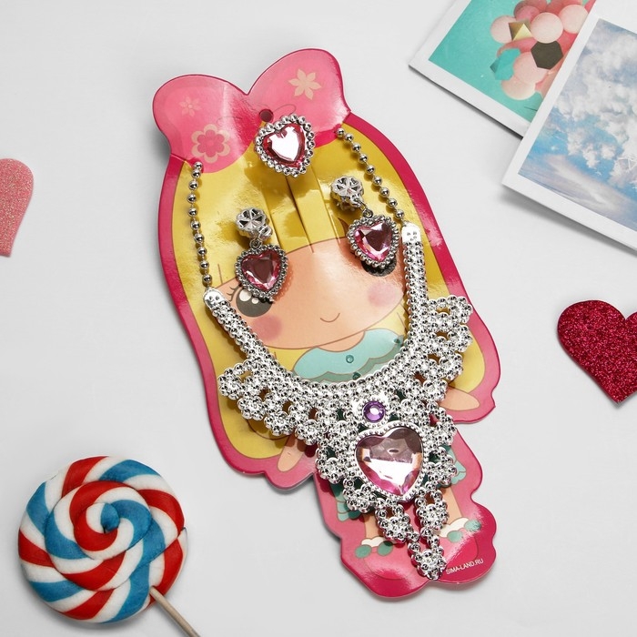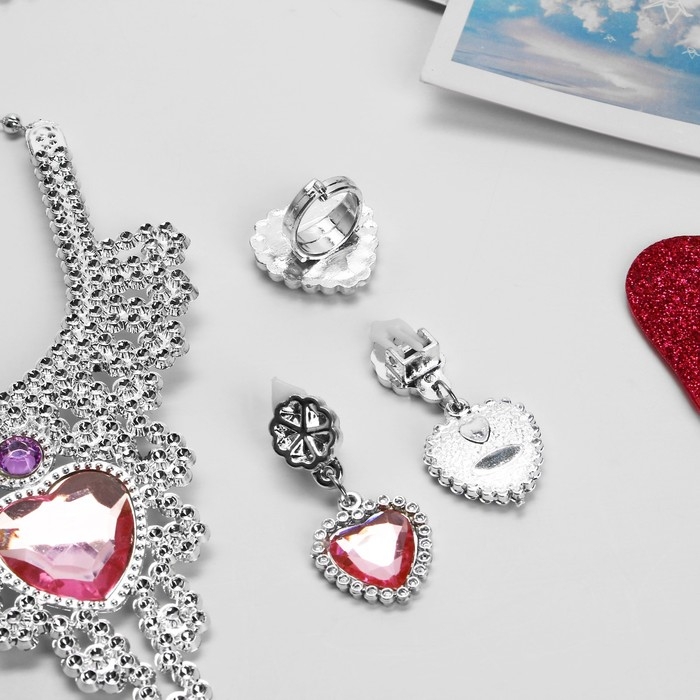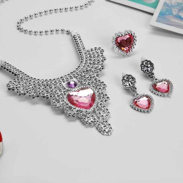 Набор детский «Выбражулька» 3 предмета: клипсы, колье, кольцо, сердце, цвет розовый