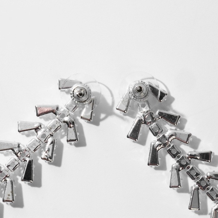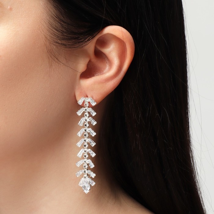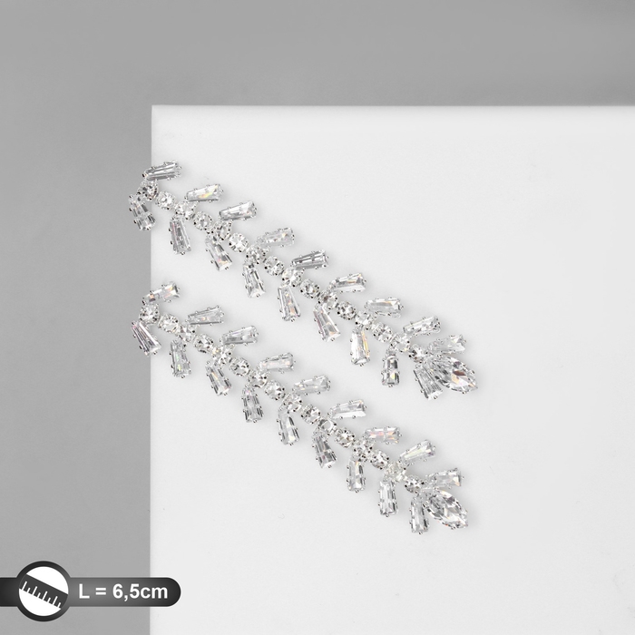 Серьги висячие со стразами «Гроздь» прямоугольники, цвет белый в серебре, 6,5 см