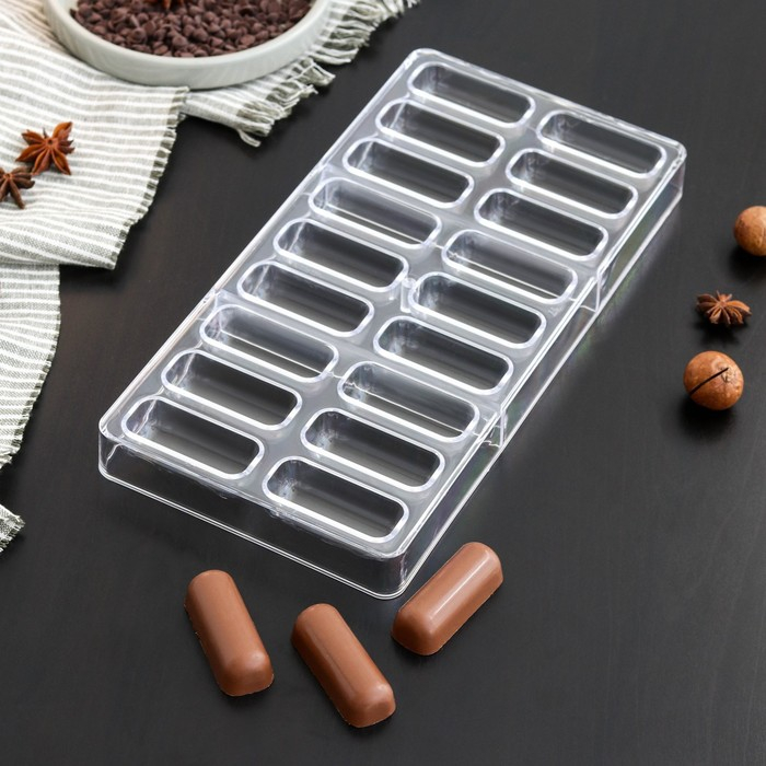 Форма для шоколада и конфет KONFINETTA «Батончик», 28×14 см, 18 ячеек, цвет прозрачный
