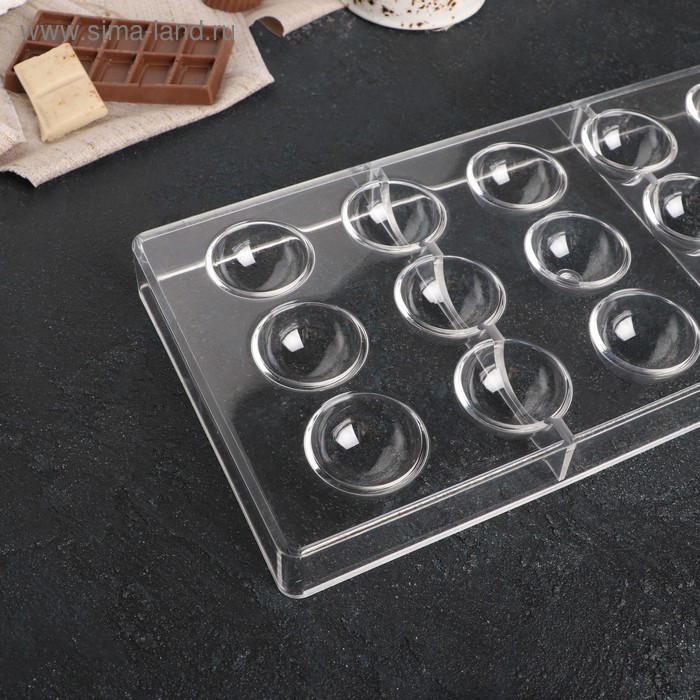 Форма для конфет и шоколада KONFINETTA «Полусфера», 28×14 см, 15 ячеек, цвет прозрачный