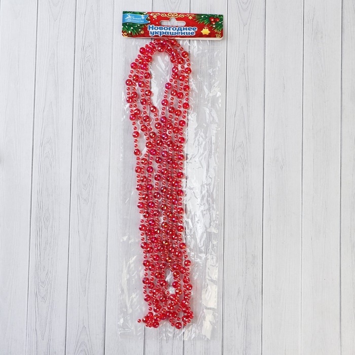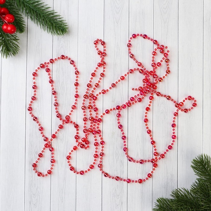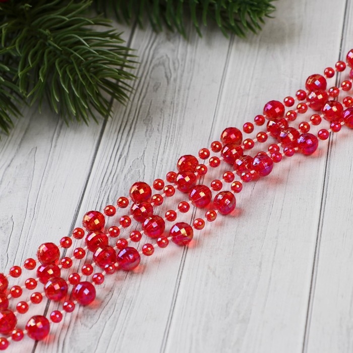 Бусы на ёлку 2,7 м d-7 мм "Льдинка" гранёные бусины, красный