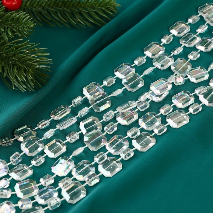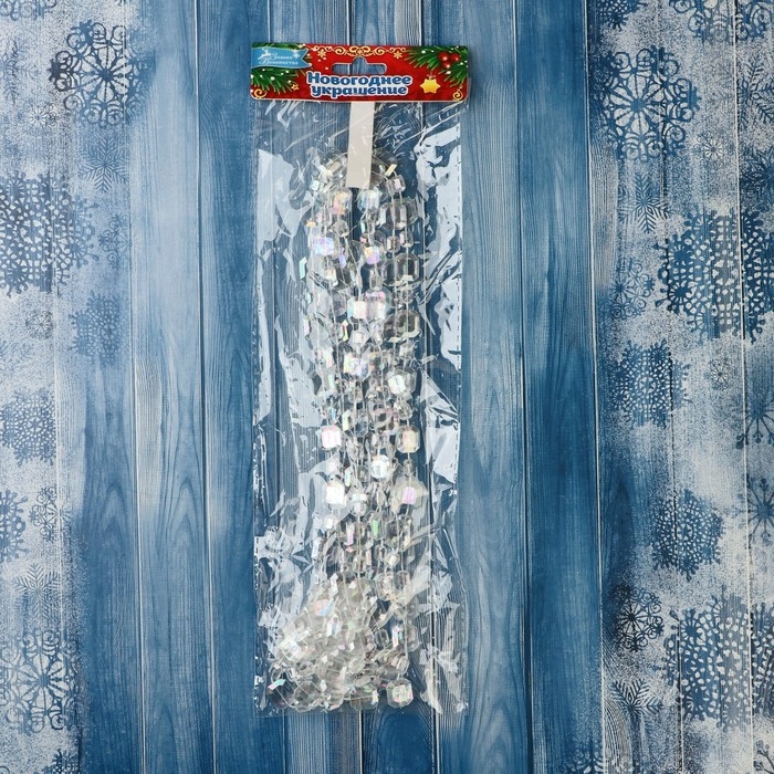 Бусы на ёлку 2,7 м 12 мм "Льдинка" кубики, прозрачный перламутр