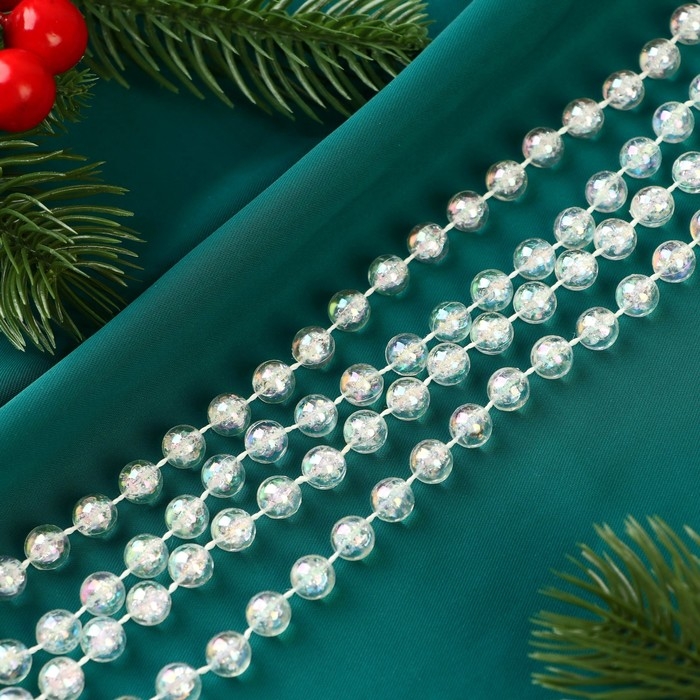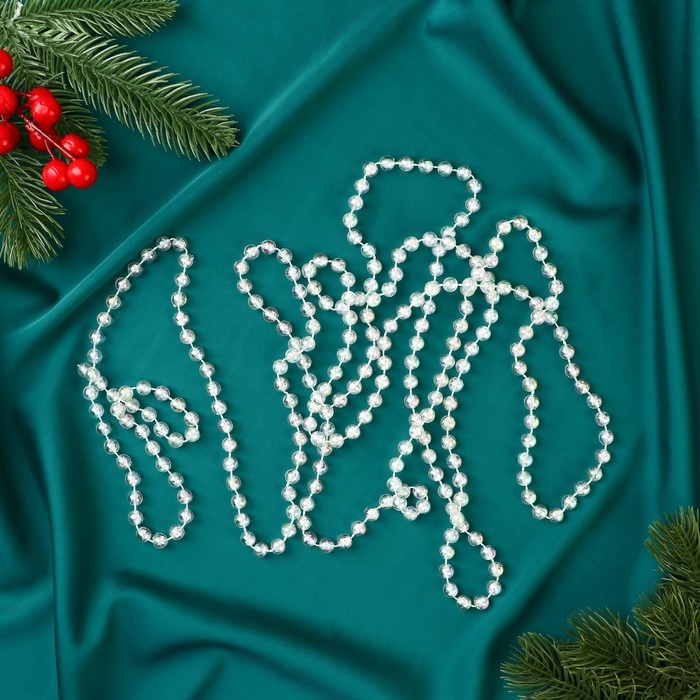Бусы на ёлку 2,7 м d-5 мм "Льдинка" классика, прозрачный перламутр