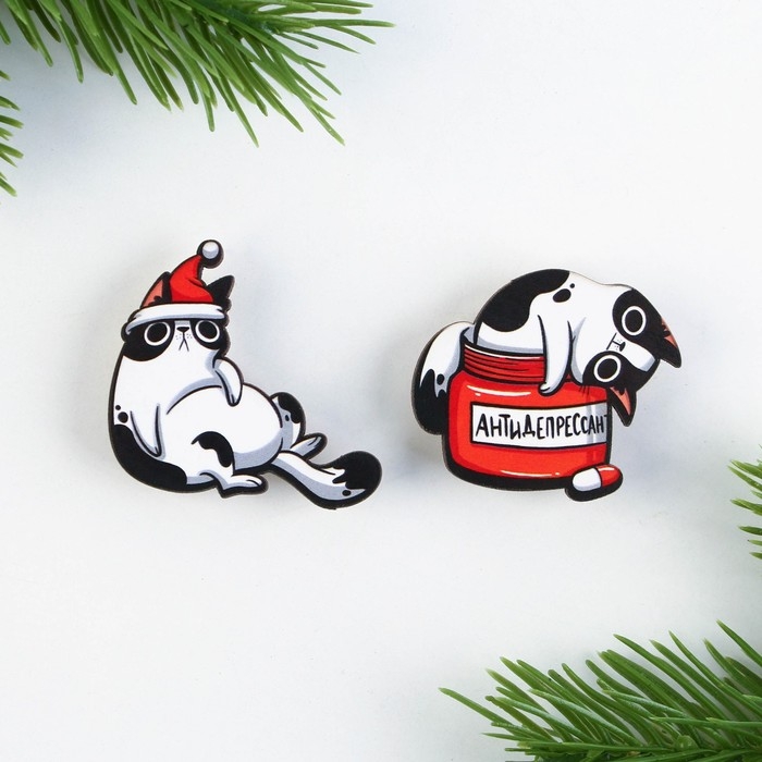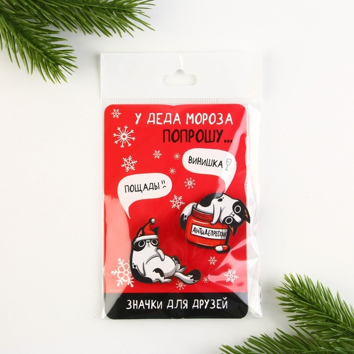 Значки новогодние для друзей парные «Новый год: У деда мороза попрошу...», набор, 2 шт