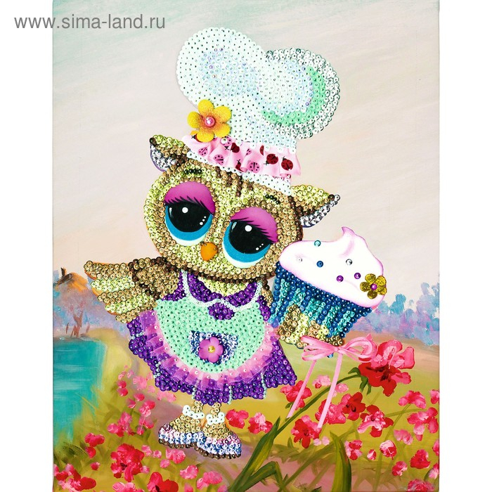 Мозаика из пайеток на холсте «Поварёнок совушка» — увлекательное занятие не только подарит вам часы удовольствия, но и станет настоящим украшением вашего интерьера.