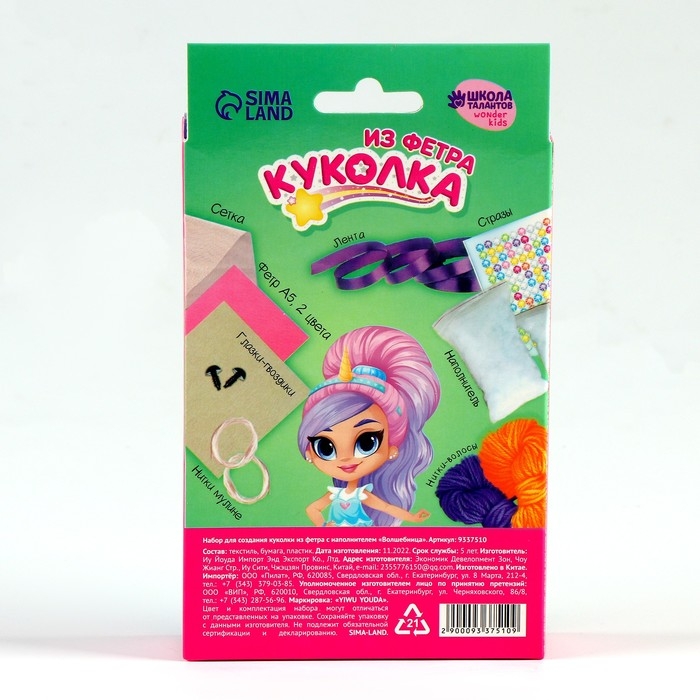 Набор для создания куколки из фетра «Волшебница» с наполнителем