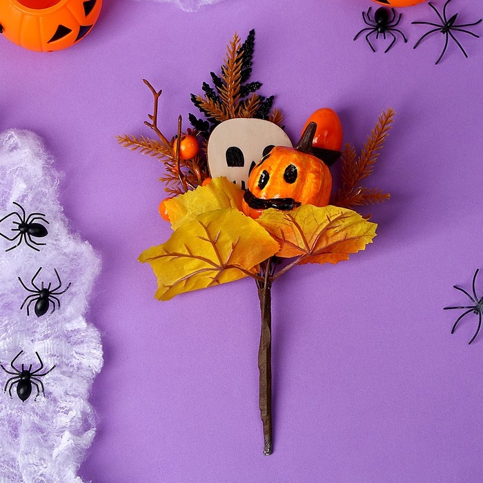Декор на палочке «Тыква на Хэллоуин», 7 × 20 × 29 см, с фигурками