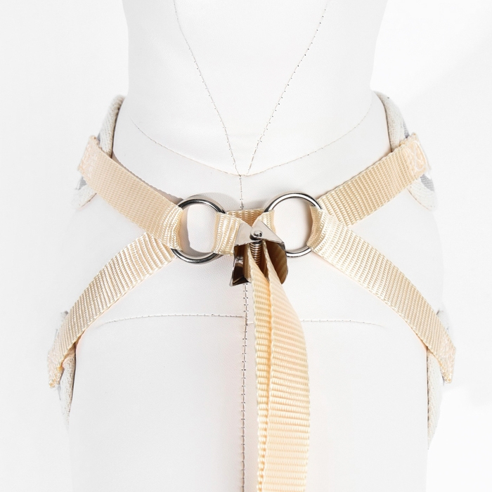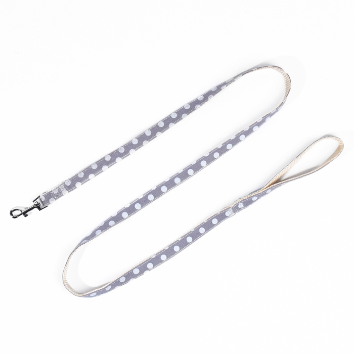Комплект с мягкой шлейкой "Горох", размер М, поводок 120 х 1,5 см, ОГ 34-66 см, серый