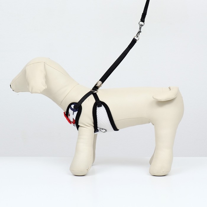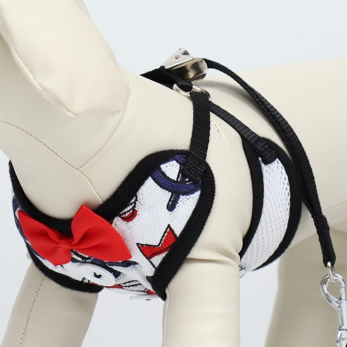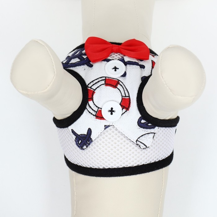 Комплект с мягкой шлейкой и бантиком "Морской", размер S, поводок 120 x 1,5 см, ОГ 23-42 см 968377