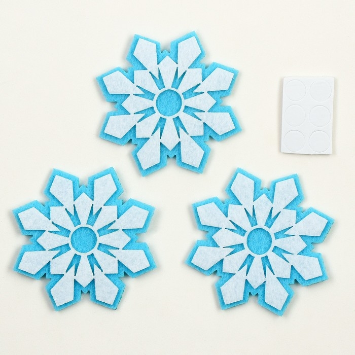 Новый год! Набор фетровых деталей для декора «Снежинки» набор 3 шт., размер 1 шт. — 7,5 см, двусторонний скотч