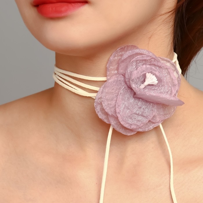 Чокер «Танго» цветок на шнурке, роза миниатюра, цвет бело-сиреневый, 154 см