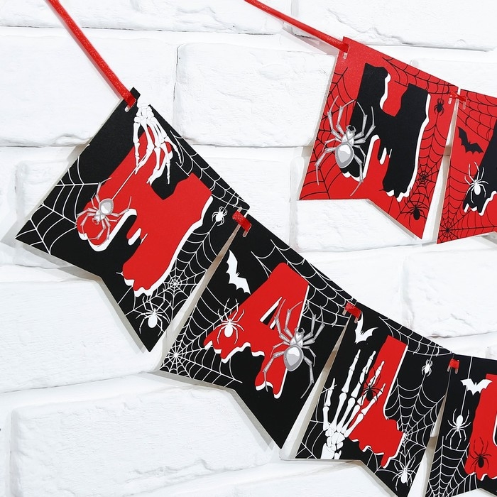 Гирлянда на ленте на Хэллоуин «Happy Halloween», паутина, длина 250 см.