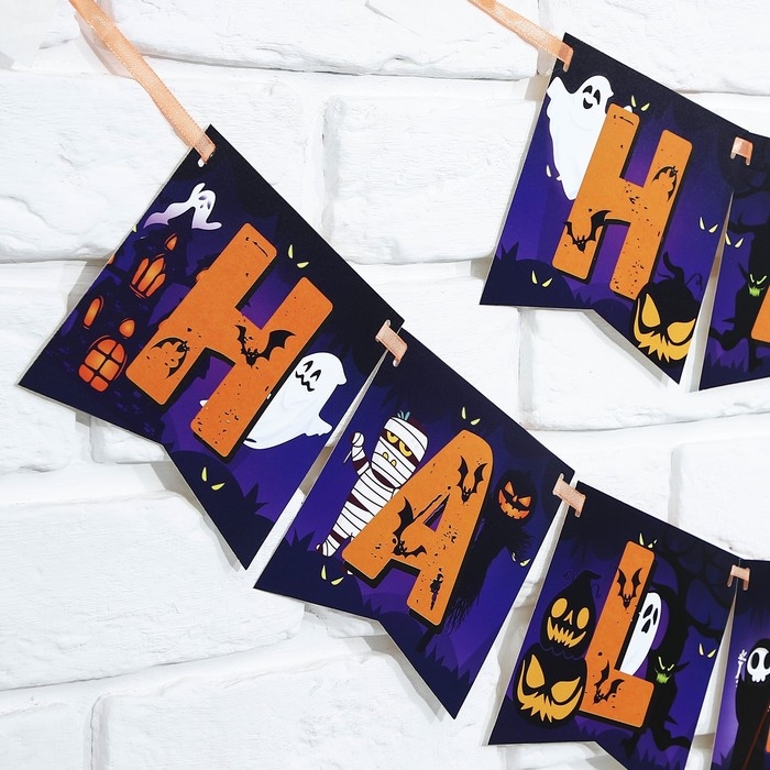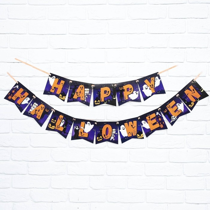 Гирлянда на ленте на Хэллоуин «Happy Halloween», привидения, длина 250 см.