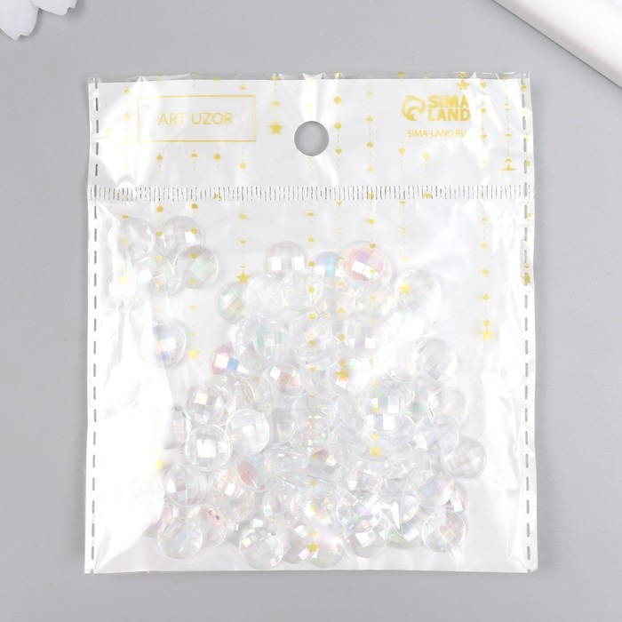 Декор для творчества пластик "Страза круглая с гранями. Перламутр" набор 100 шт 1х1 см