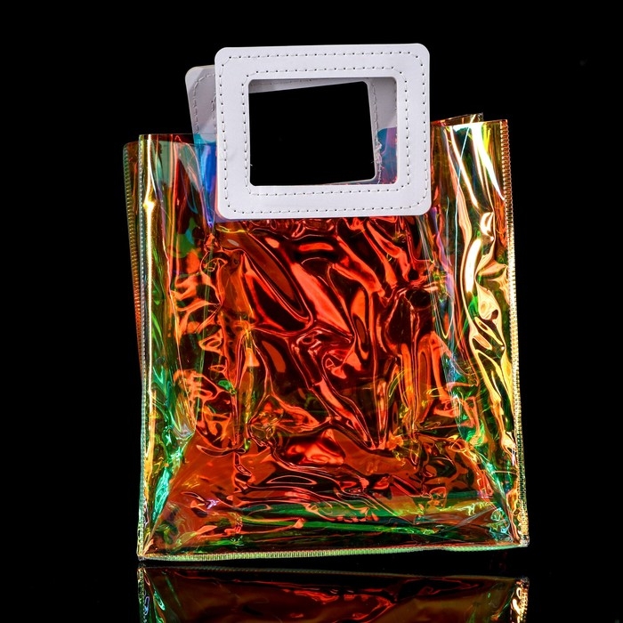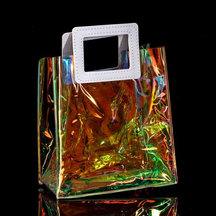Пакет подарочный из ПВХ, иридисцентный, белый 20 x 18 x 10 см