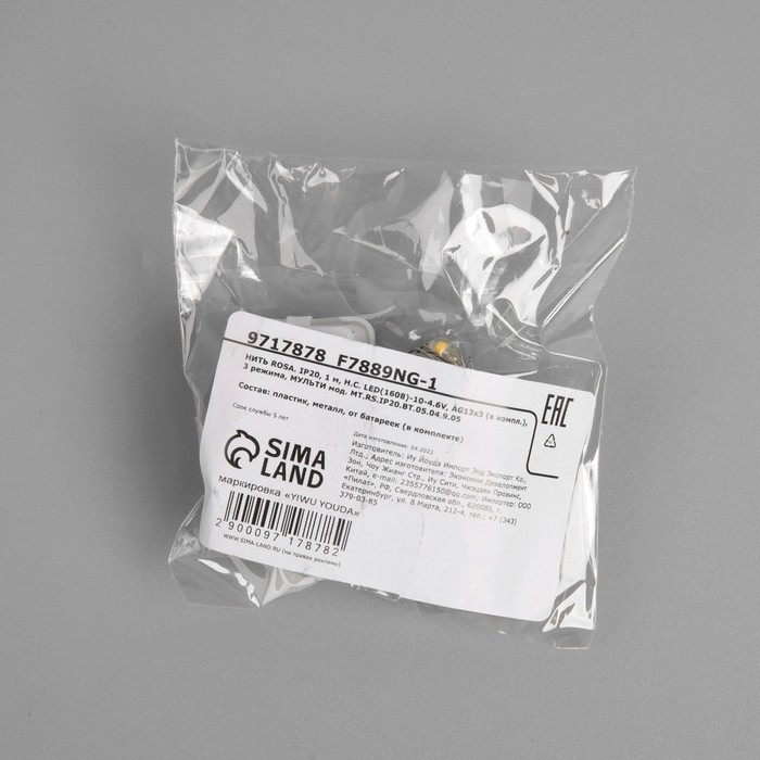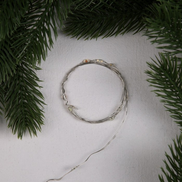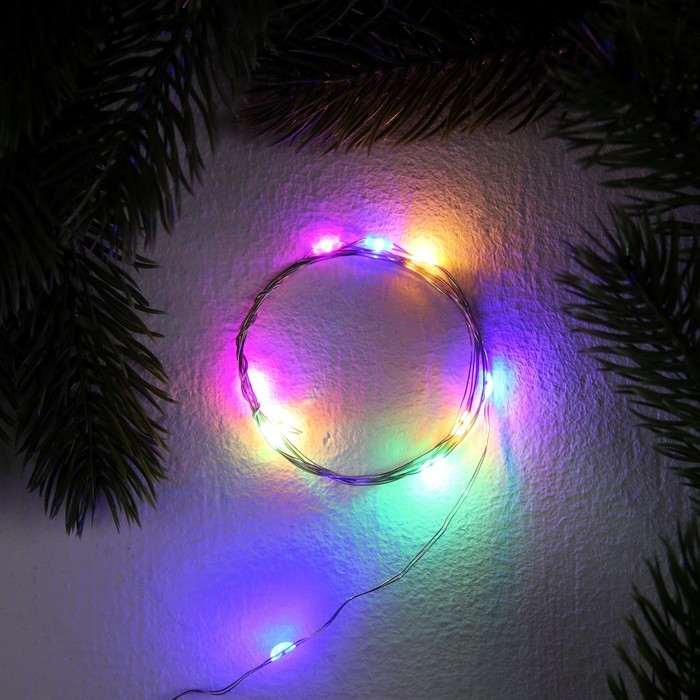 Гирлянда «Нить» 1 м роса, IP20, серебристая нить, 10 LED, 3 режима, батарейки AG13х3 (в комплекте), свечение мульти