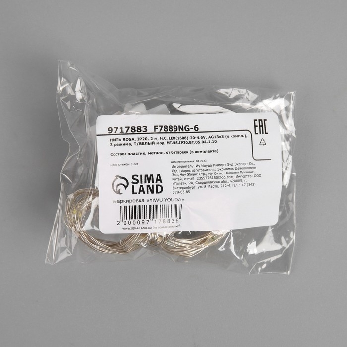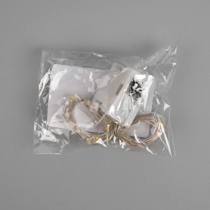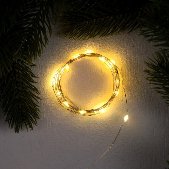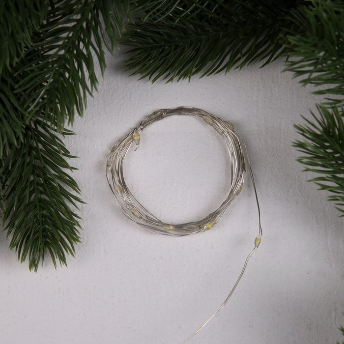 Гирлянда «Нить» 2 м роса, IP20, серебристая нить, 20 LED, 3 режима, батарейки AG13х3 (в комплекте), свечение тёплое белое