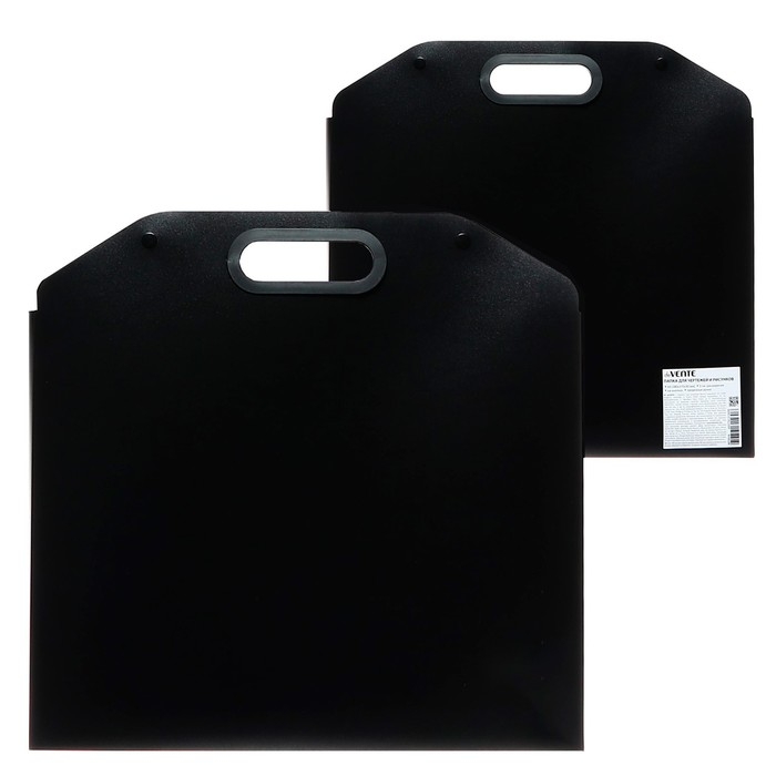 Папка для чертежей и рисунков "deVENTE" A4 (380 x 370 x 30 мм) 550 мкм, с расширением 3 см, с прорезными ручками, на кнопках, черная, индивидуальная упаковка