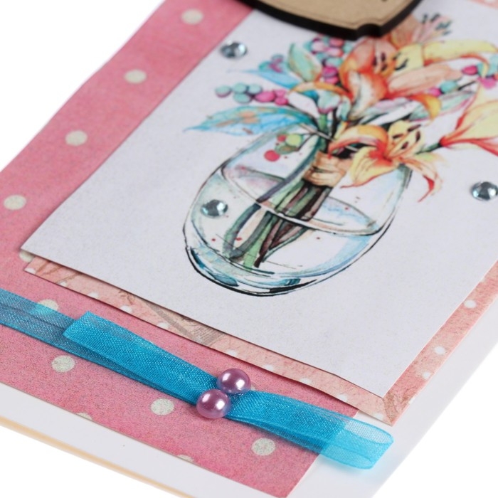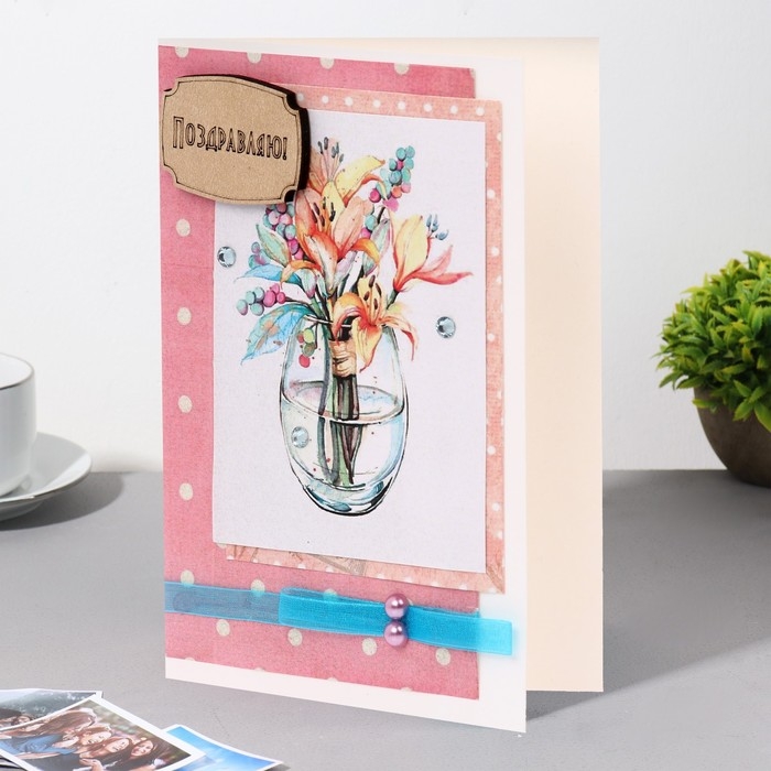 Открытка "Поздравляю!" ручная работа, ваза, 11,5х17 см