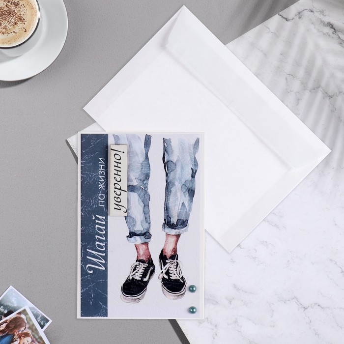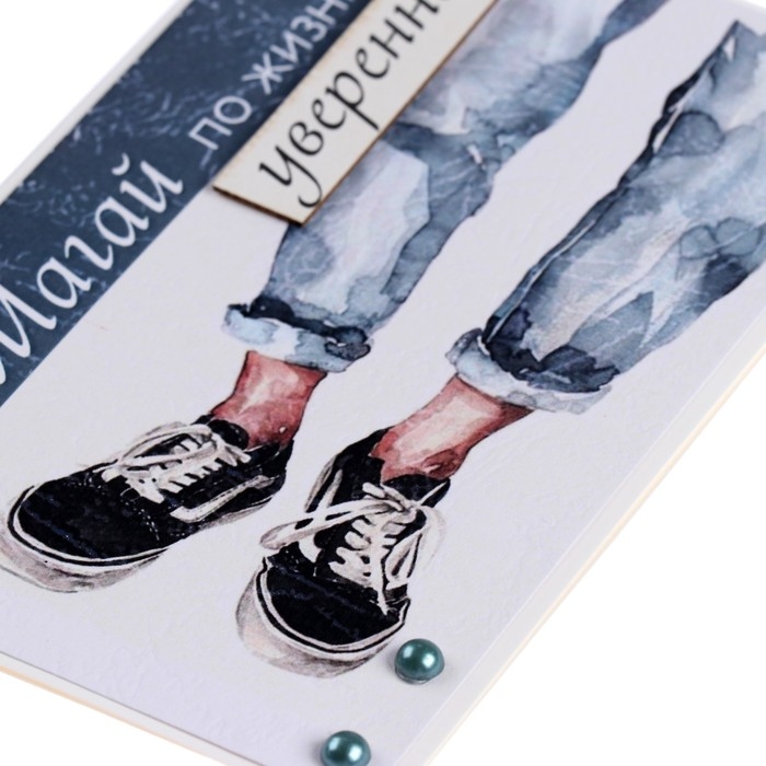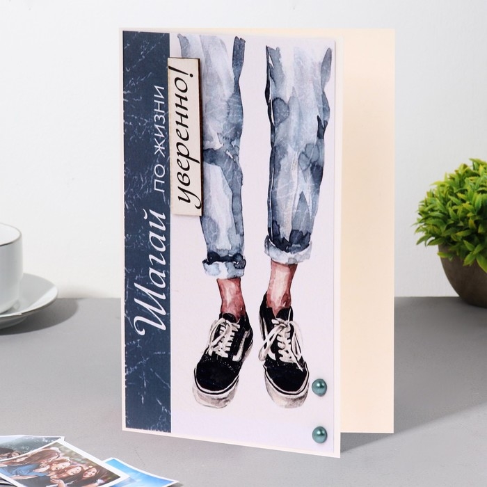 Открытка "Шагай по жизни уверенно!" ручная работа, кроссовки, 11,5х17 см