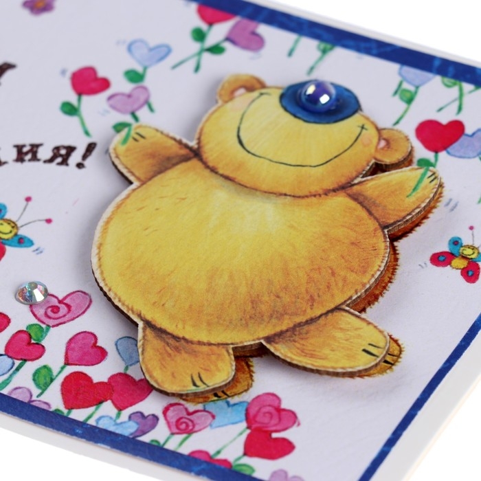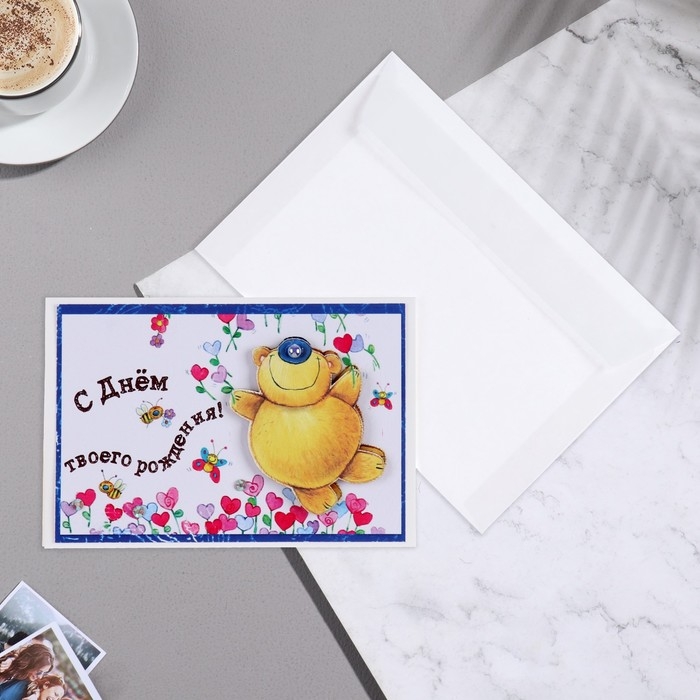 Открытка "С Днём твоего Рождения!" ручная работа, мишка, 11,5х17 см