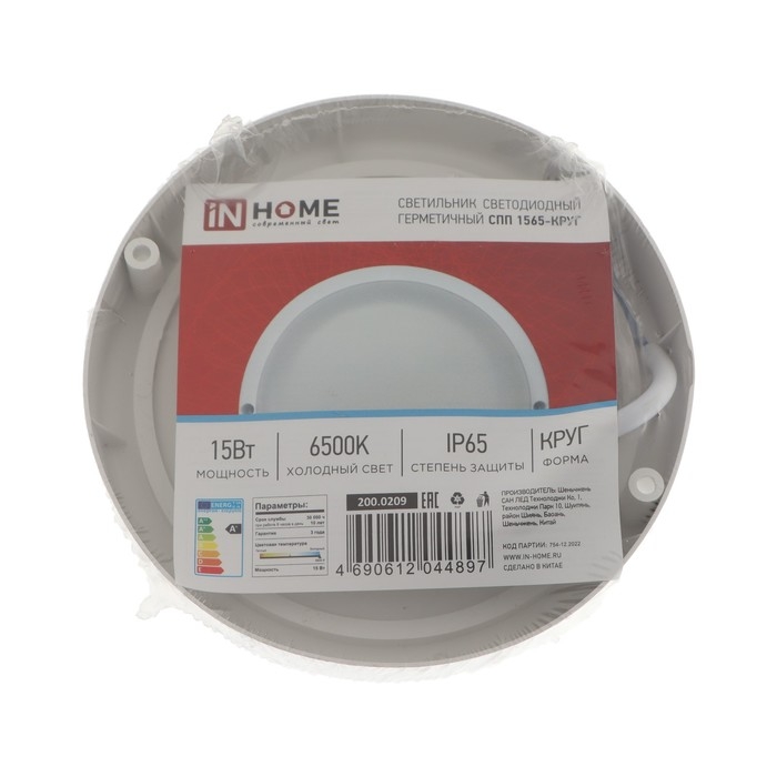 Светильник светодиодный IN HOME СПП 1565-КРУГ, 15 Вт, 6500 К, 1350 Лм, 230 В, IP65