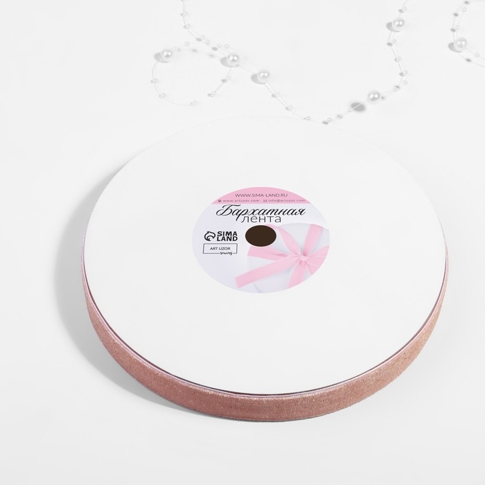 Лента бархатная, с золотым люрексом, 20 мм, 18 ± 1 м, цвет розовый №02