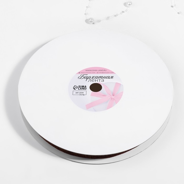 Лента бархатная, с золотым люрексом, 15 мм, 18 ± 1 м, цвет коричневый №119
