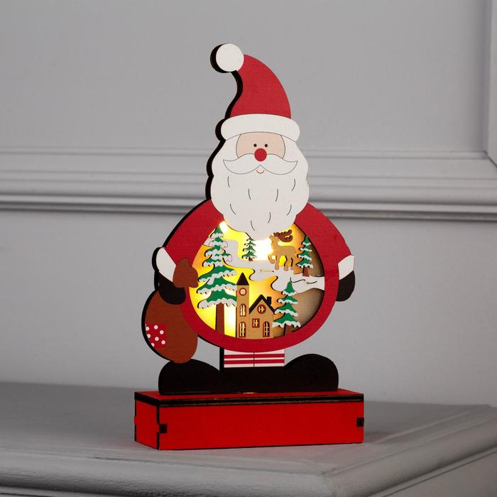 Светодиодная фигура «Дед Мороз» 13 × 14 × 5 см, дерево, батарейки ААх2 (не в комплекте), свечение тёплое белое