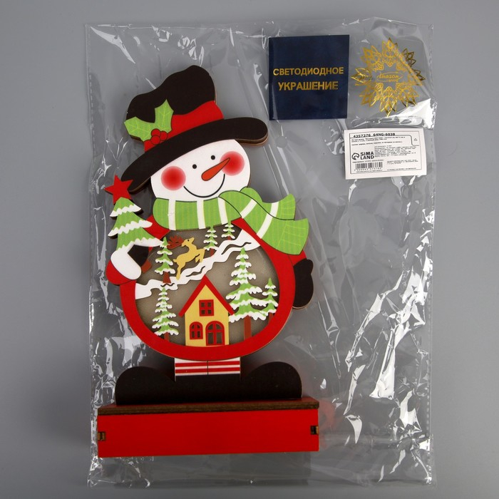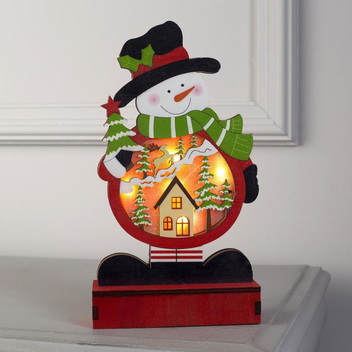 Светодиодная фигура «Снеговик» 13 × 24 × 5 см, дерево, батарейки АААх2 (не в комплекте), свечение тёплое белое