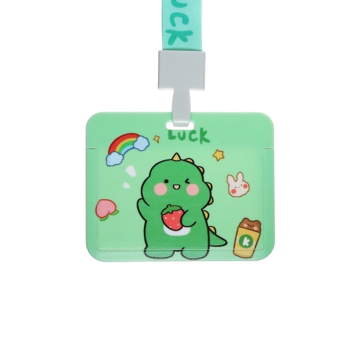 Бейдж горизонтальный 10 х 7,8 см, внутренний размер 5,2 х 8,2 см, лента 42 см, с рисунком Дино