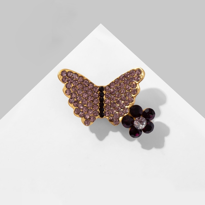 Брошь «Бабочка» с мини-цветочком, цвет фиолетовый в матовом золоте
