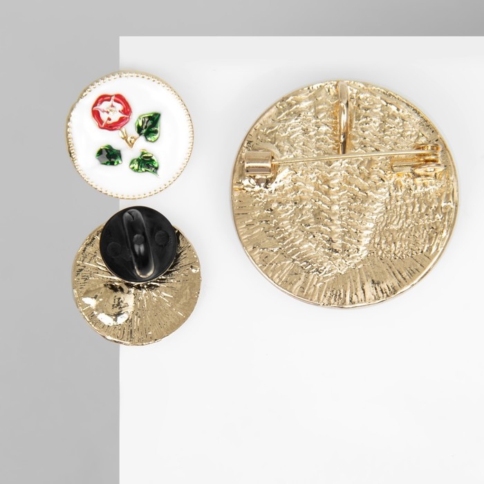 Набор 2 предмета: серьги, брошь-кулон «Винтаж», цветной в золоте