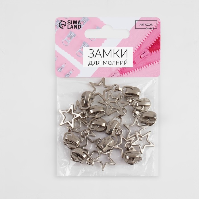 Бегунок автоматический для молнии «Спираль», №5, декоративный «Звёзды», 10 шт, цвет никель