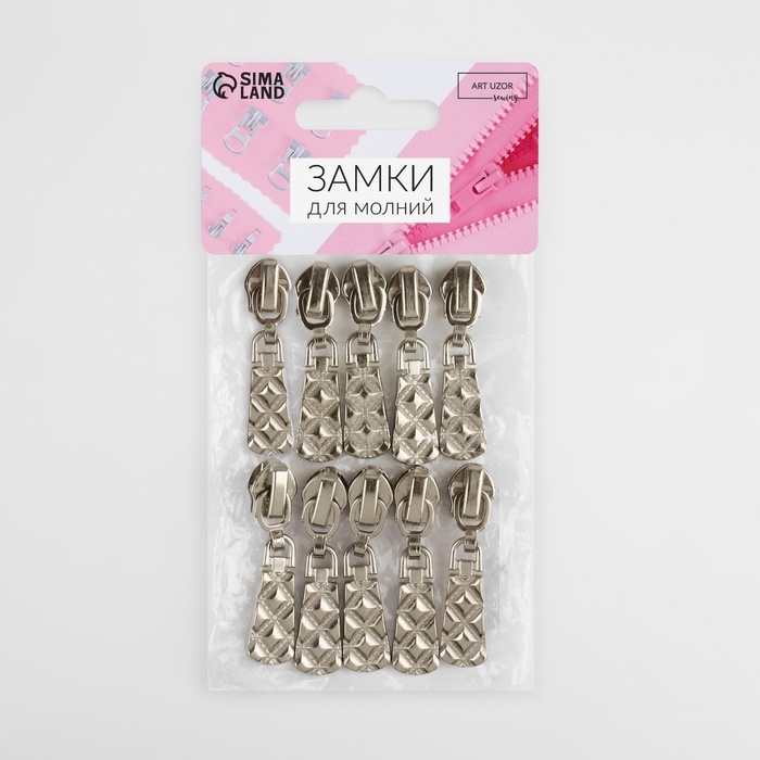 Бегунок автоматический для молнии «Трактор», №8, 10 шт, цвет никель