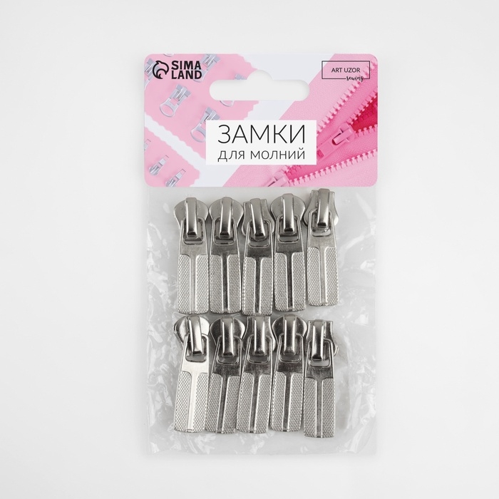Бегунок автоматический для металлической молнии, №5, 10 шт, цвет никель