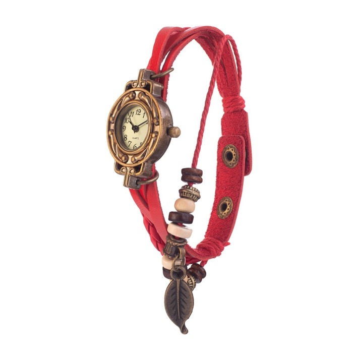 Утонченный и изящный дизайн наручных часов подчеркнет ваш безукоризненный вкус в любой ситуации и дополнит образ. Красивые винтажные часы с подвеской на кожаном плетёном ремешке для прекрасных дам любого возраста. Работают от батарейки типа "таблетка", которой хватает на долгое время. Ремешок украшен деревянными бусами и акрилом.